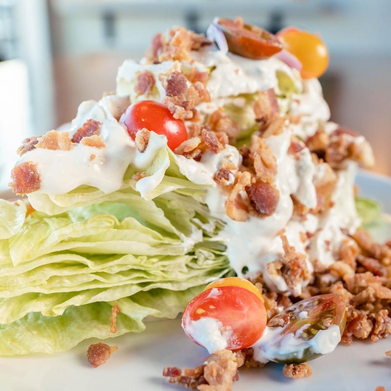 Iceberg, tomato, red onion, bacon, blue cheese dressing